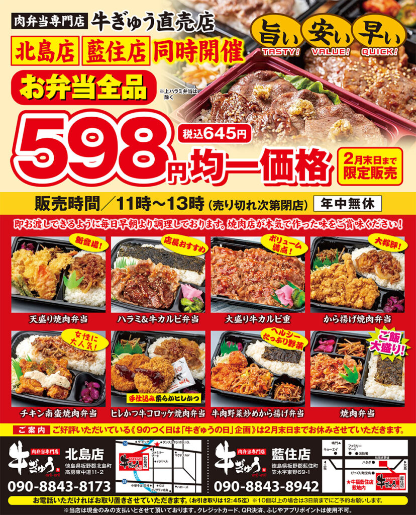牛ぎゅうの「北島店」「藍住店」の2店舗で期間限定キャンペーンを開催!
